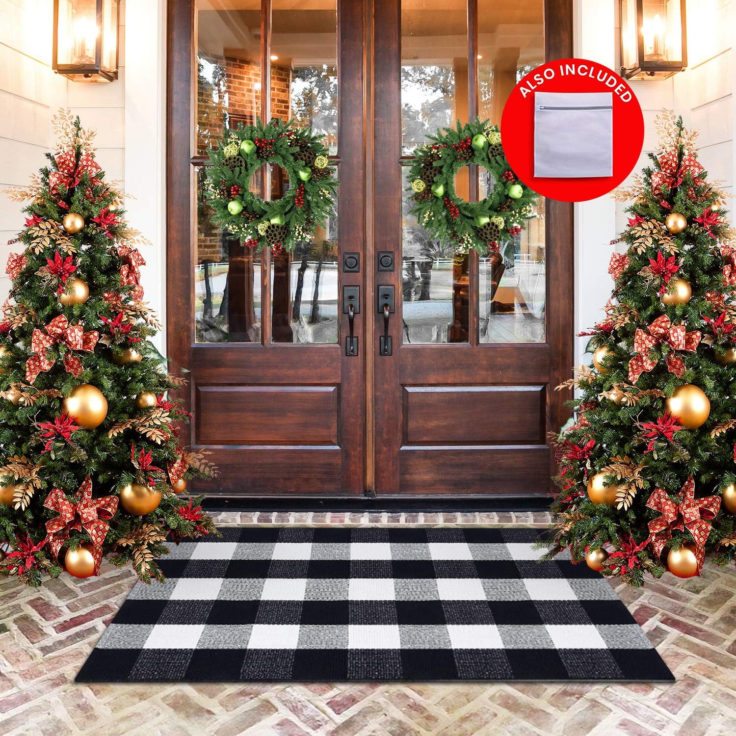 I have this outdoor rug that I placed under my doormat, and I like the Buffalo Check pattern. It’s also washable. It’s super cheap – like right around $20.
